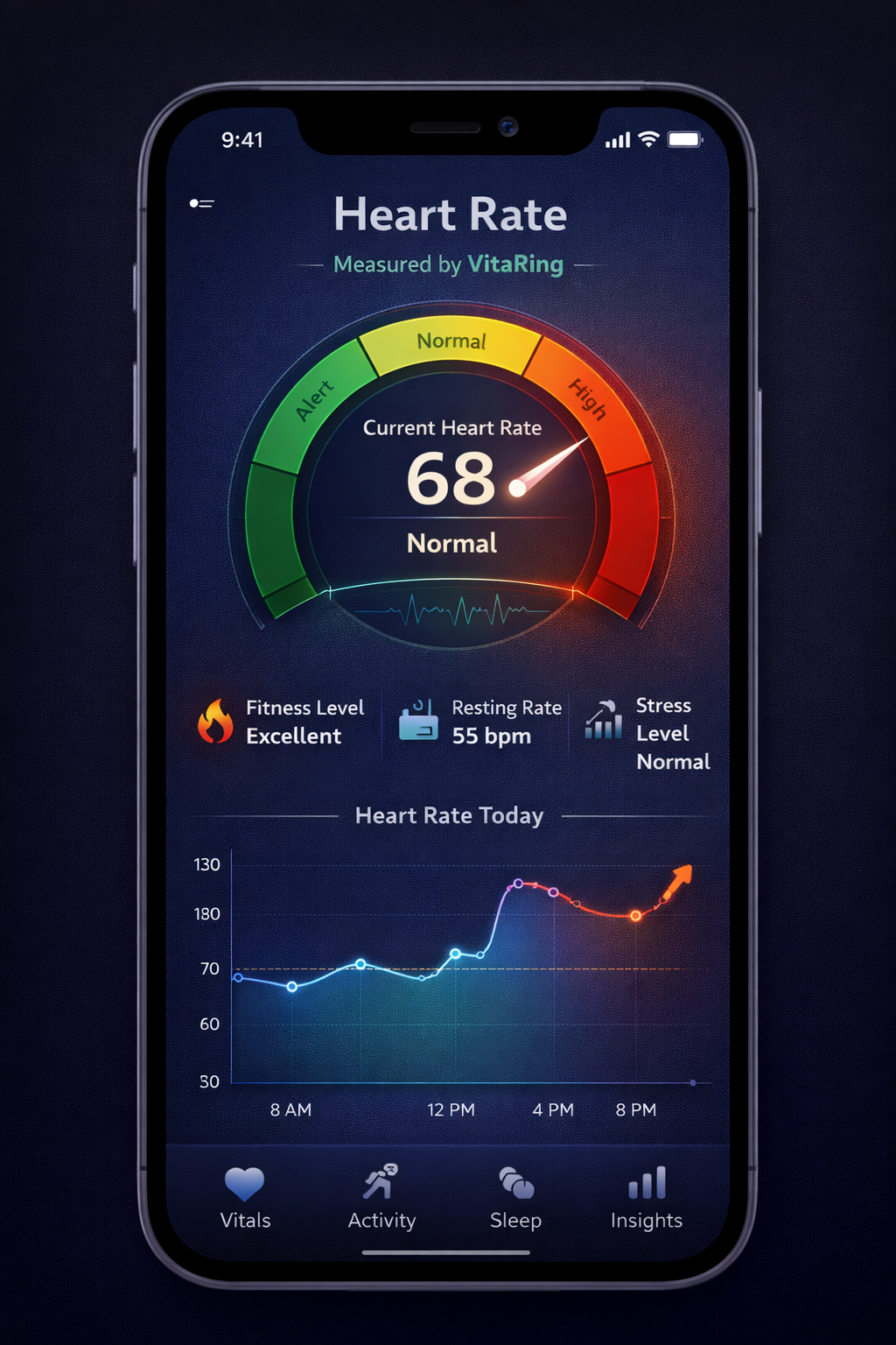 Smart Vita Ring continuously tracks your body temperature, providing clear insights into daily and nighttime patterns.